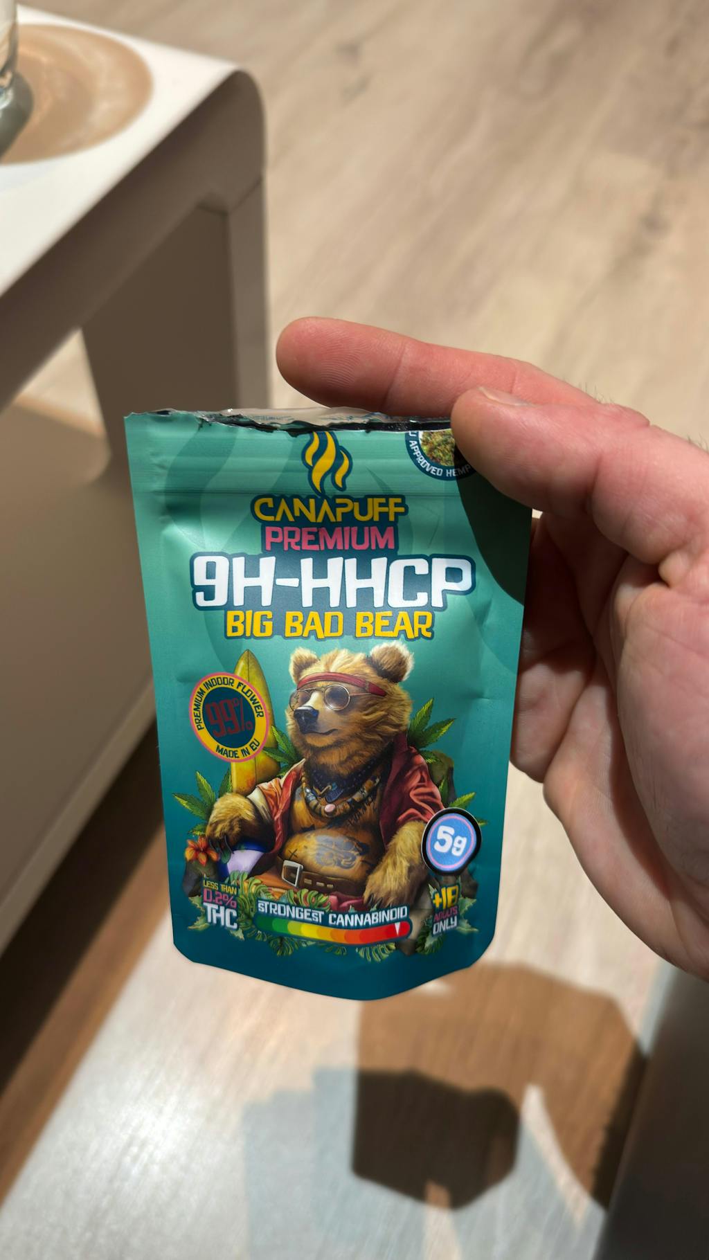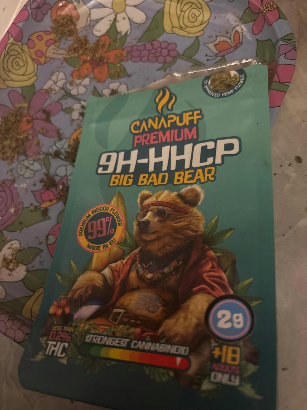 Big Bad Bear yra 9h-HHCP žiedas su sodresniu ir intensyvesniu skoniu. Pumpurai jaučiasi tankūs ir Natural.